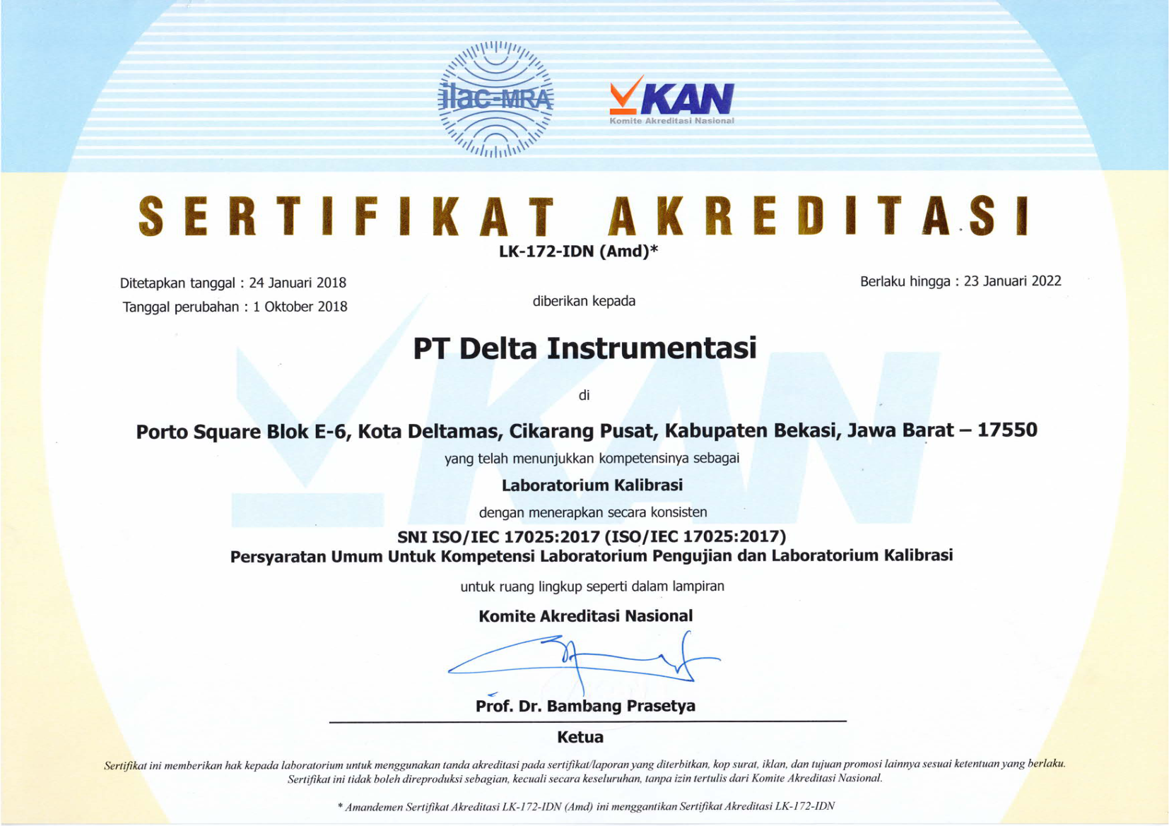 - Laboratorium Kalibrasi PT. DELTA INSTRUMENTASI adalah Laboratorium yang secara legal berada dibawah naungan PT. DELTA INSTRUMENTASI.